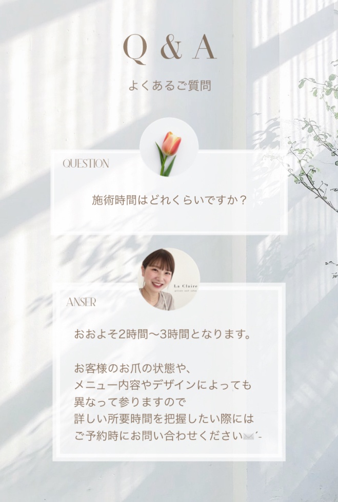 メニューにより多少のお時間調整可能ですので
